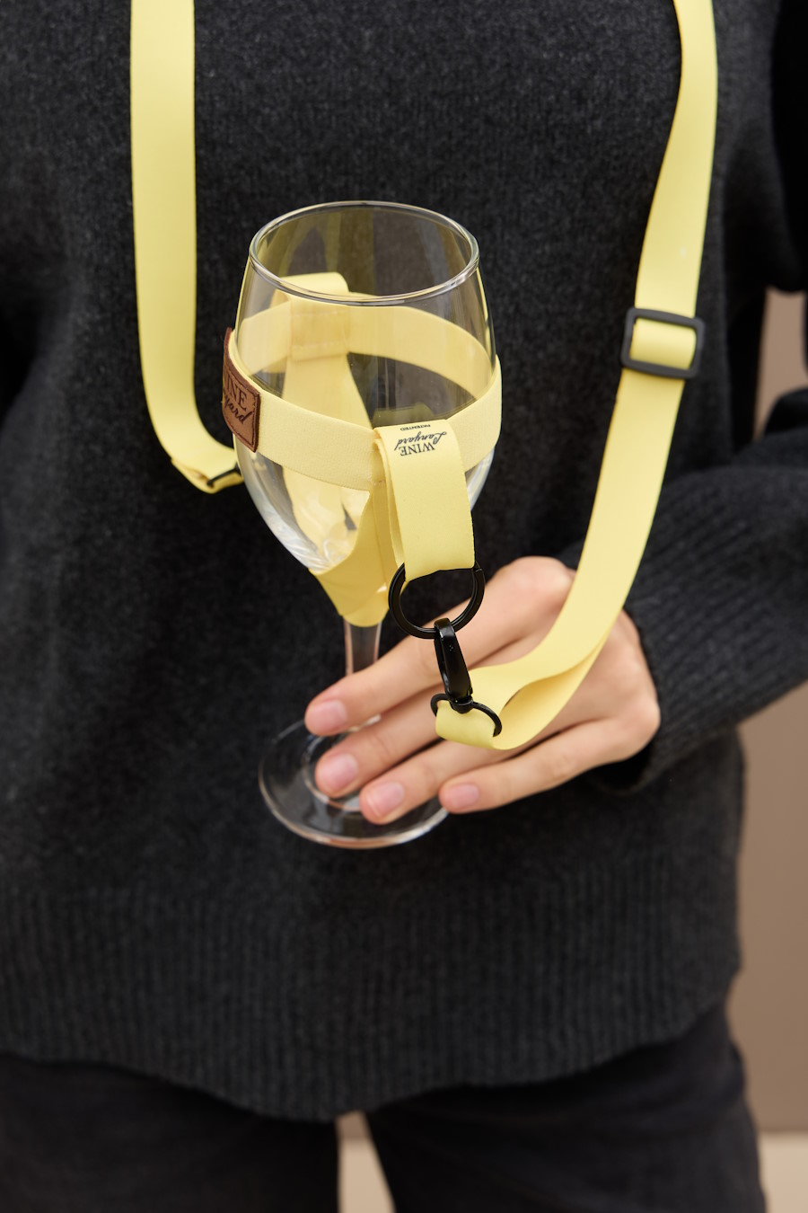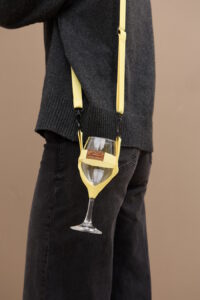 Тримач для келиха — це практичне та елегантне рішення для винних заходів. Тримач дозволяє звільнити руки, зберігаючи келих у безпеці та вертикальному положенні. Модель виконана у насиченому жовтому кольорі з використанням високоякісної фурнітури та фірмової нашивки.