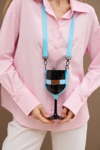 Професійне рішення для винних івентів, що поєднує практичність та естетику. Тримач дозволяє вільно спілкуватися та насолоджуватися фуршетом, не хвилюючись про безпеку свого келиха. Виріб виконаний у яскравому стилі з акцентом на високоякісні деталі та бренд Wine Lanyard.