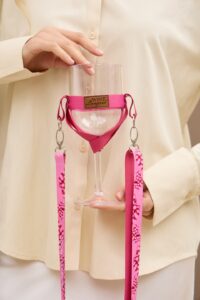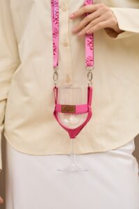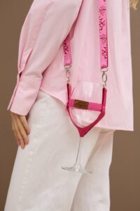 Ідеальний вибір для тривалих презентацій та фестивалів, де важливо мати вільні руки. Тримач надійно фіксує ніжку келиха, зберігаючи його в ідеальному положенні. Висока якість матеріалів та насичена колірна гама роблять цей аксесуар по-справжньому особливим.