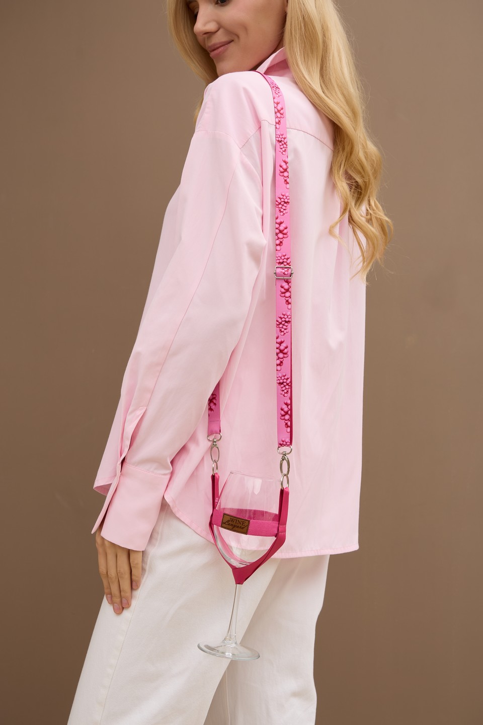 Ідеальний вибір для тривалих презентацій та фестивалів, де важливо мати вільні руки. Тримач надійно фіксує ніжку келиха, зберігаючи його в ідеальному положенні. Висока якість матеріалів та насичена колірна гама роблять цей аксесуар по-справжньому особливим.